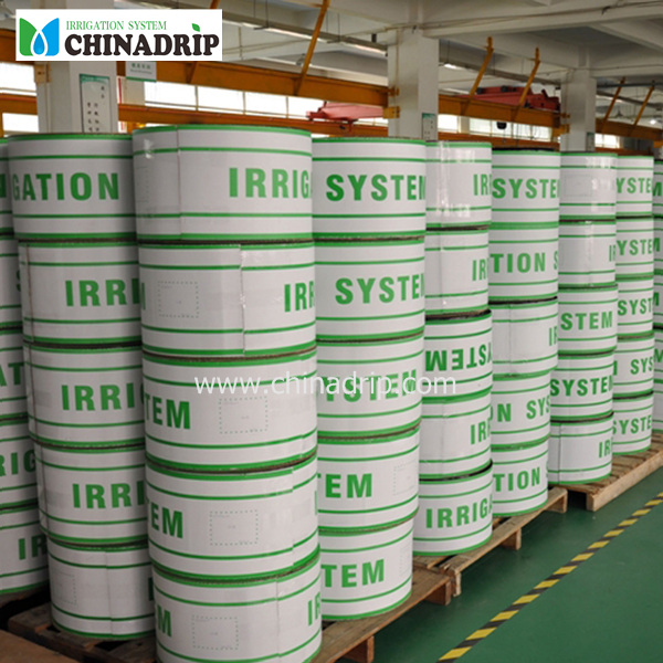 Fita gotejadora Chinadrip com emissores planos internos, 16mm de diâmetro, espessura de 0,2mm a 0,6mm, espaçamento de 10cm a 90cm, com vazão de 1,4L/H, 2,0L/H e 3,0L/H, feita com material de alta qualidade e tecnologia avançada, melhor para anticorrosão e antienvelhecimento, CV superior e excelente uniformidade. Com novo tipo de passagens em labirinto, excelente resistência ao entupimento. Excelente redução de pressão, maior comprimento de assentamento. Extrudado com emissor interno, leve e embalado em rolo, bom para transporte. O emissor é projetado para resistir ao entupimento com grande tamanho de caminho de fluxo e a maior seção transversal do setor em todo o mundo.