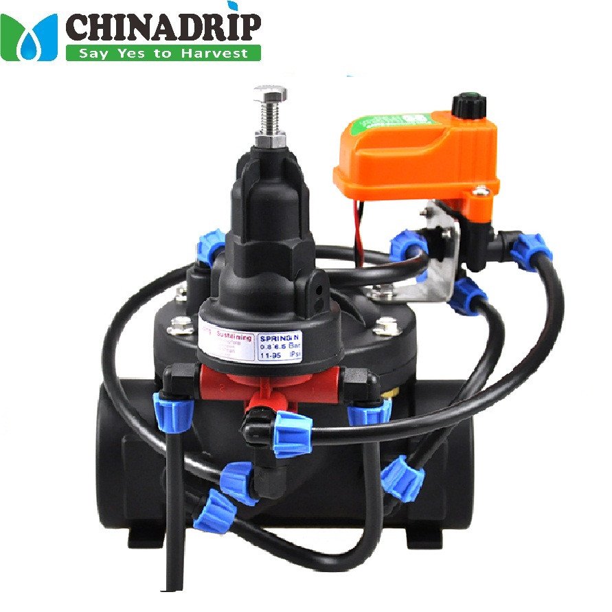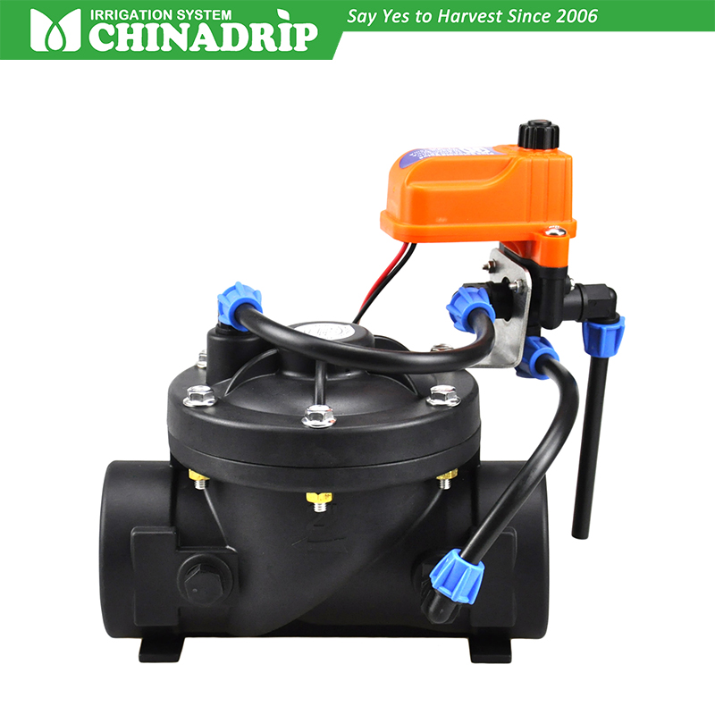 Esta válvula controlada por solenóide com solenóide CHINADRIP Plus de 3 vias é uma válvula de controle operada hidraulicamente e acionada por diafragma com circuito de controle hidráulico interno de alimentação e sangramento. O Solenóide Plus permite abertura manual, fechamento ou controle automático por sinal elétrico.